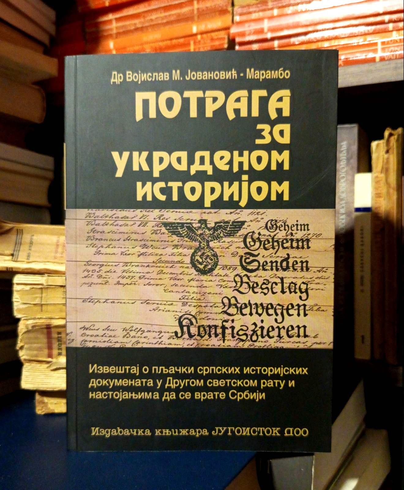 Izveštaj o pljački srpskih istorijskih dokumenata od 1941-1944. godine i nastojanjima da se vrate Srbiji. Ukupan obim opljačkane arhivske građe iznosi oko četrdeset železničkih vagona.
